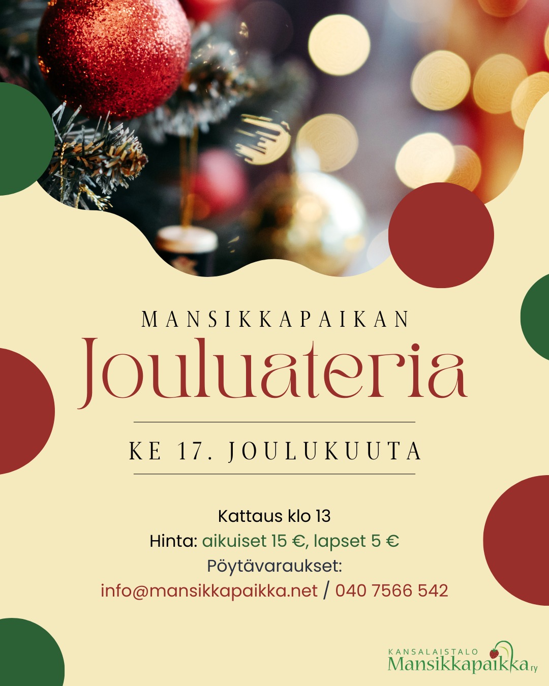 Perinteinen jouluateria järjestetään jälleen Mansikkapaikassa! 🍓❄ Tervetuloa yhteisen pöydän ääreen nauttimaan jouluruoasta […]